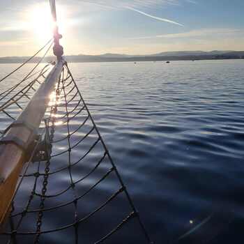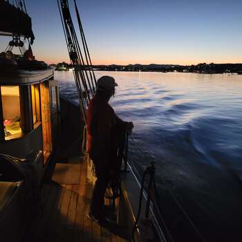 Our knowledgeable crew can share info on marine history, wildlife and local history and geology. We can also throw in a casual sailing lesson. You are encouraged to help sail by hauling the sails, taking the helm, riding on the bowsprit, or simply relaxing onboard.